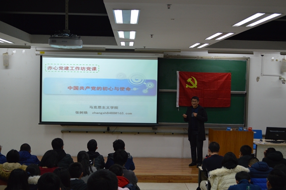 2018年11月11日晚,北航赤心党建工作坊第五期第四堂必修课于J3-105顺利举行。本次党课由北京麻豆精品秘 国产传媒马克思主义学院院长助理、副教授张树焕老师主讲,主题为《中国共产党的初心和使命》。本次课程主要分为三个部分:中国共产党的初心和使命是什么,为什么要“不忘初心,牢记使命”和怎样做到“不忘初心,牢记使命”。