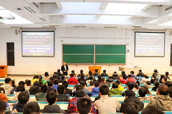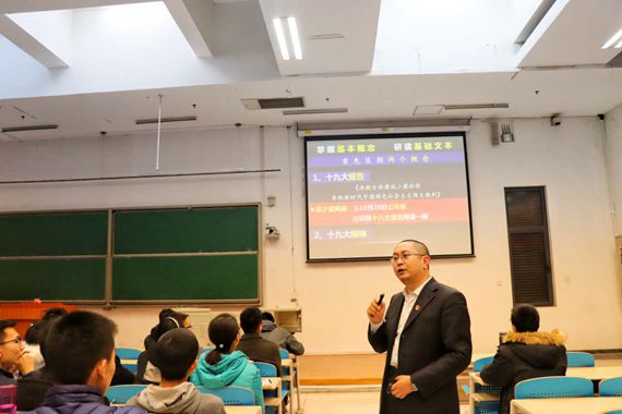 在庄严的《国际歌》后,党课正式开启。首先,高老师强调学习十九大要本着“原原本本、原汁原味“的原则去学习党的十九大精神,定下了本次党建课堂的基调。接着,高宁老师从学习十九大精神的必要“文本”出发,向学员们介绍了具体而易懂的研读十九大文本的三种方法:掌握基本概念,研读基础文本;了解十九大完成了哪些主要工作;研读报告、党章修正案、“纪实”“诞生记”和其它重要文本。随后,高宁老师具体讲解了这三种方法,并分享了学习资源,讲述了对习近平新时代中国特色社会主义思想内涵的理解,分析了习近平总书记原文原著的特点,让大家对于如何学习十九大精神有了全新的思路。高宁老师通过中国人民解放军驻吉布提保障基地部队进驻营区仪式的举行,“一带一路”的“世界历史”意义等实例,让同学们明确中国在这五年里取得的种种成就是学习十九大精神的现实钥匙。在课程的后半段,高宁老师从核心要义、思想方法、精神气质等角度讲对于“十九大精神”的理解。最后,高宁老师以青春这一精神气质特质结尾,提出了对年轻一代的期望,让大家不由得热血沸腾。