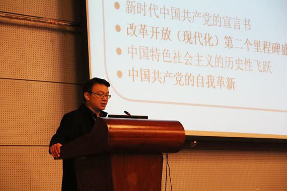 (通讯员  刘思良 梁伟涛)11月19日下午,北京麻豆精品秘 国产传媒冯如党建工作坊第二次党建课堂在沙河校区实4-205拉开帷幕。来自北京大学马克思主义学院的王久高老师为冯如党建工作坊学员们带来了题为“开辟新时代——十九大报告精神解读”的精彩党课。党课的内容主要包括三个方面:对十九大报告的解读,对十九大历史地位的分析以及对当代青年历史使命的认识。冯如书院执行院长高静老师出席了本次党课,冯如书院辅导员梁伟涛老师主持了此次党课。