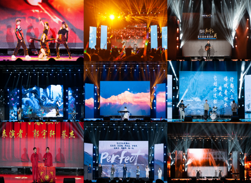 晚会在激情的舞蹈表演中拉开序幕,不同风格的舞蹈展开唯美碰撞;吉他弹唱下的歌曲串烧婉转、动听,歌曲相互交织,演绎歌曲之美;相声表演引得满堂喝彩。而下半场同样以不同风格的歌曲开始点燃了全场的激情,更有深情对唱诉说了多少少年的心事;钢琴独奏节目里,悦耳婉转的钢琴之声舞动在大厅之中;更有WHY乐队带来表演展现了青春激昂的风采,阿卡贝拉合唱带我们漫步于歌曲童话之中。晚会形式多样的表演,不仅展示了表演者们的才艺,更让观众们在享受视觉和听觉盛宴的同时,感受到了我国传统文化的魅力和现代文化的活力。
