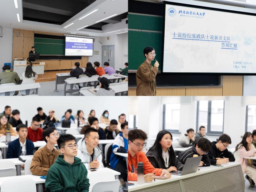 各实践队在答辩中对本队实践的准备工作、实践过程、成果收获以及未来展望进行总结汇报。“士和言直”实践队及其支队聚焦于乡村振兴主题,通过查阅相关资料、实地调研学习、联系干部群众等方式分析当地乡村发展面临的挑战,并建言献策,为乡村振兴贡献北航力量。“士说纷纭”实践队的三个支队通过宣讲与视频结合、线上与线下并举的方式,将航空航天、趣味编程、人工智能等知识科普给中小学生,在孩子们的心中种下一颗科学的种子,激发对科学的兴趣。“探芯筑梦”实践队的两个支队在实践中不仅带领中小学生们参观北航微纳中心,科普了集成电路的相关知识,同时联系相关企业进行参观交流,对集成电路技术及行业的发展加深了解。