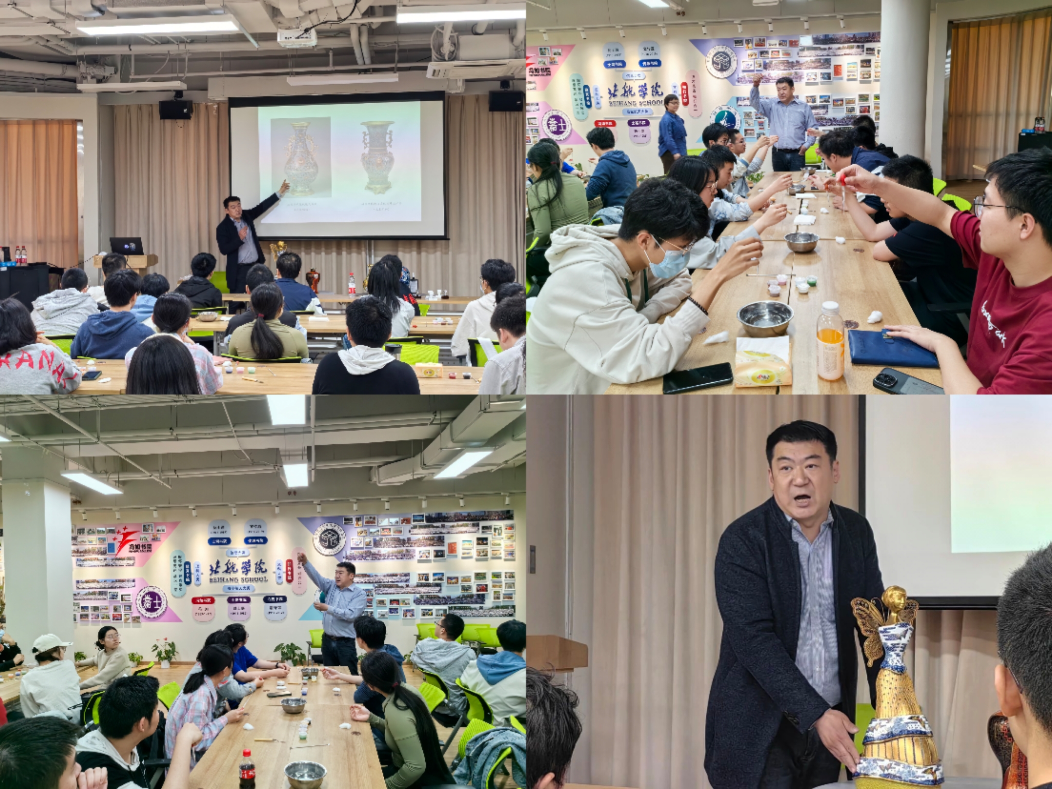 首场课程以“蓝浸匠心,景绘传承”为主题,邀请到非物质文化遗产“景泰蓝制作技艺”代表性传承人李大冬老师为同学们讲解景泰蓝发展历史、艺术特点以及其在当下的传承与发展,同学们在老师的示范和指导下,体验了景泰蓝制作中 “点蓝”这一关键步骤,切身感受精益、专注以及不断创新的工匠精神。