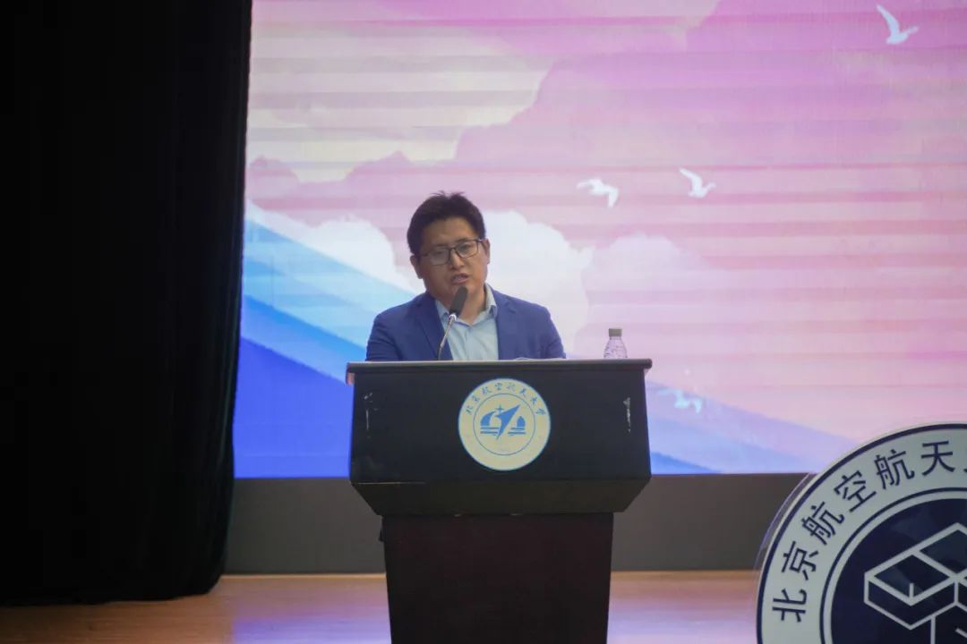 颁发聘书后,生物与医学工程学院的郑付印老师上台发言。郑付印老师表达了将与新生们共同经历大学生活的期待,鼓励学生要拥有国际视野和创新精神,希望同学们能从他律到自律,一同登得更高、走得更远、看得更阔。