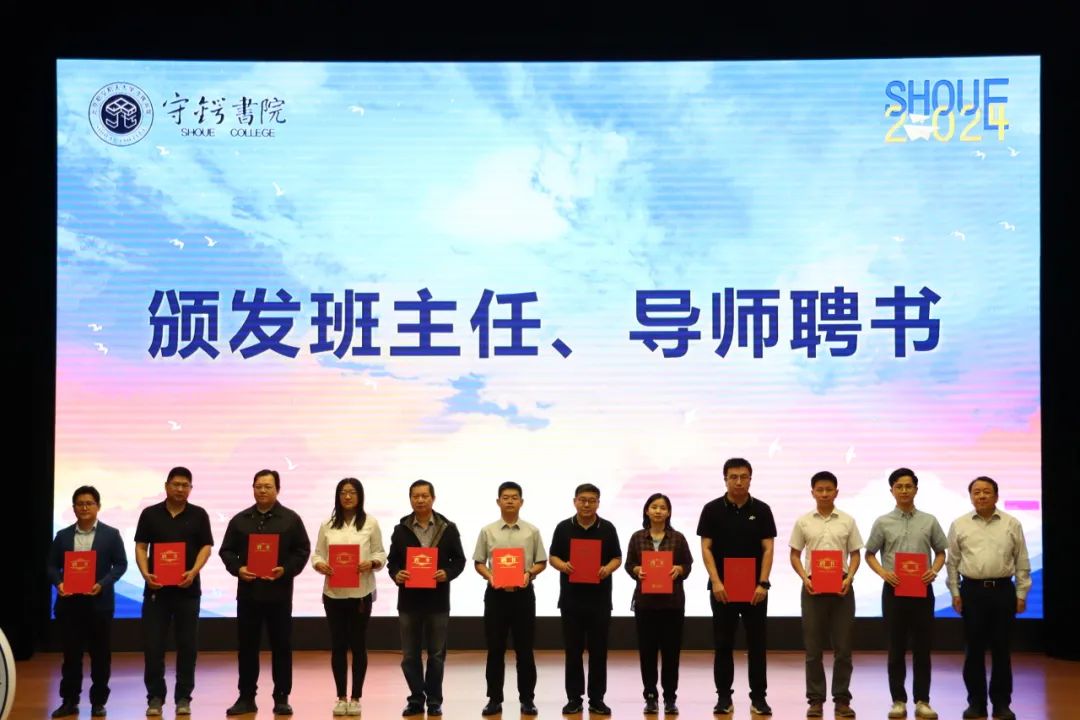孟庆春为守锷书院班主任、导师代表颁发聘书。守锷书院的班主任和导师们不仅是学术上的领导者,更是学生的引路人。希望每一位守锷新生都能在班主任和导师的指导下尽快融入大学生活,有所收获、不断成长。