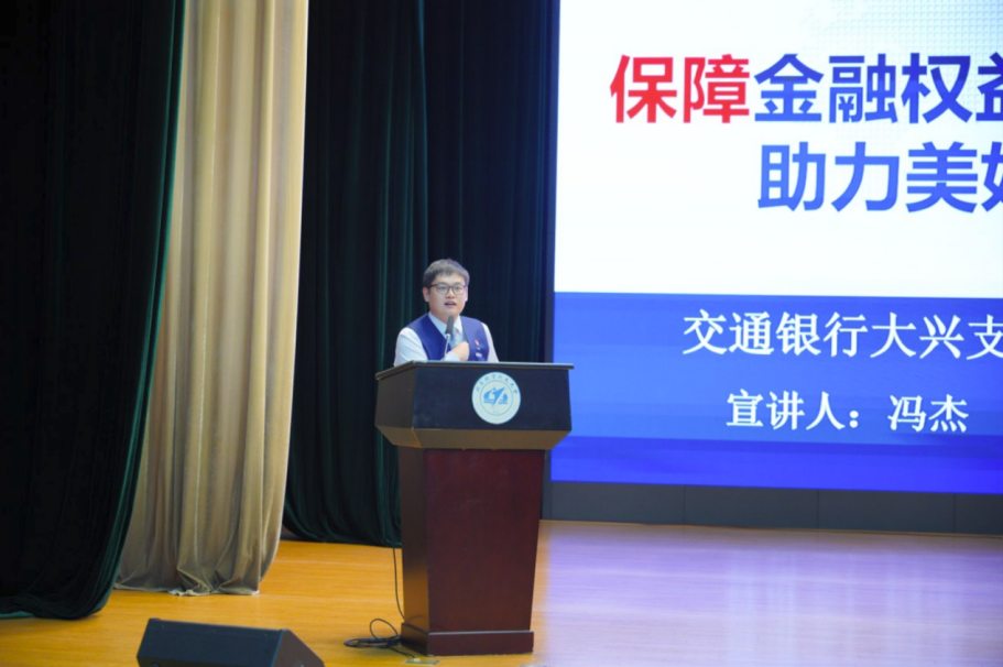 本次反诈知识分享由交通银行北京大兴支行冯杰主讲。他以贴近学生的视角切入,聚焦学生日常高频使用的支付工具,为同学们明确了微信支付、支付宝与银行的本质差异,并解读银行在反诈工作中的“三大核心能力”——“智能防火墙”、“专业拦截防线”和“科普传播力量”。他表示,这三大能力相辅相成、协同发力,为维护金融秩序稳定和群众财产安全提供了坚实保障。